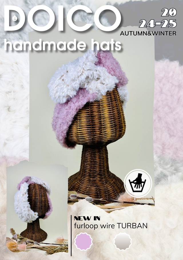 ||∥▶︎furloop wire TURBAN◀︎∥|| モーヴ×パンパス 被るワイヤーターバンです 後頭部分にゴムが付いています。 ワイヤーで捻った前頭部分は、一度フォルムが決まったらそのままキープで着脱できます。 幅広の平ゴムがしっかりホールドします。 ワイヤーを何度も開いたり捻ったりして劣化させるのを防ぎます。 エコファーとループ糸は帽子使っているお素材で存在感抜群です。 ⚠️ワイヤーの先端部分は破損すると危険ですのでなるべく触らないようにお願いします ÷÷÷÷÷÷÷÷÷÷÷÷÷÷÷÷÷÷÷÷÷÷÷÷÷÷÷÷÷÷÷ ループヤーンはベビーアルパカを混紡したフワフワでクルクルしたエアリーな糸です。たっぷり二本どりでファーに負けない存在感があります。 ファーは軽くて抜け毛しづらく、高密度です。カラーもアンダーコートとオーバーコートの色分け表現がリアルな獣毛のようでリッチな雰囲気です。 ●LOOP(17%ベビーアルパカ,83%ウール)@yokota_co_ltd ●Ruby ECO FUR(100%ポリエステル) 株式会社 元 廣 ●ゴムビンカワ(インナーゴムベルト) 百々株式会社 ●ワイヤー ●ポリエステルシフォン