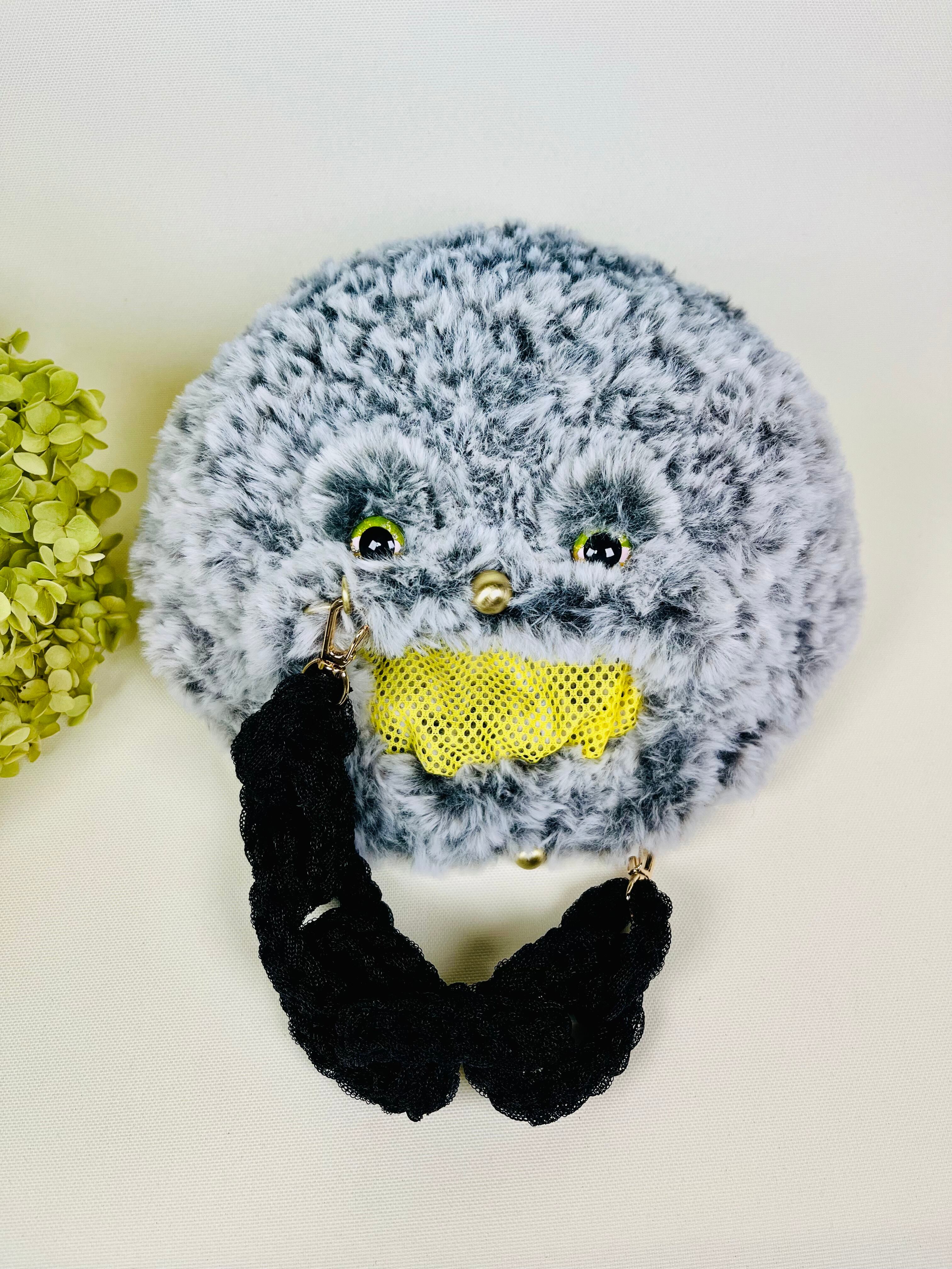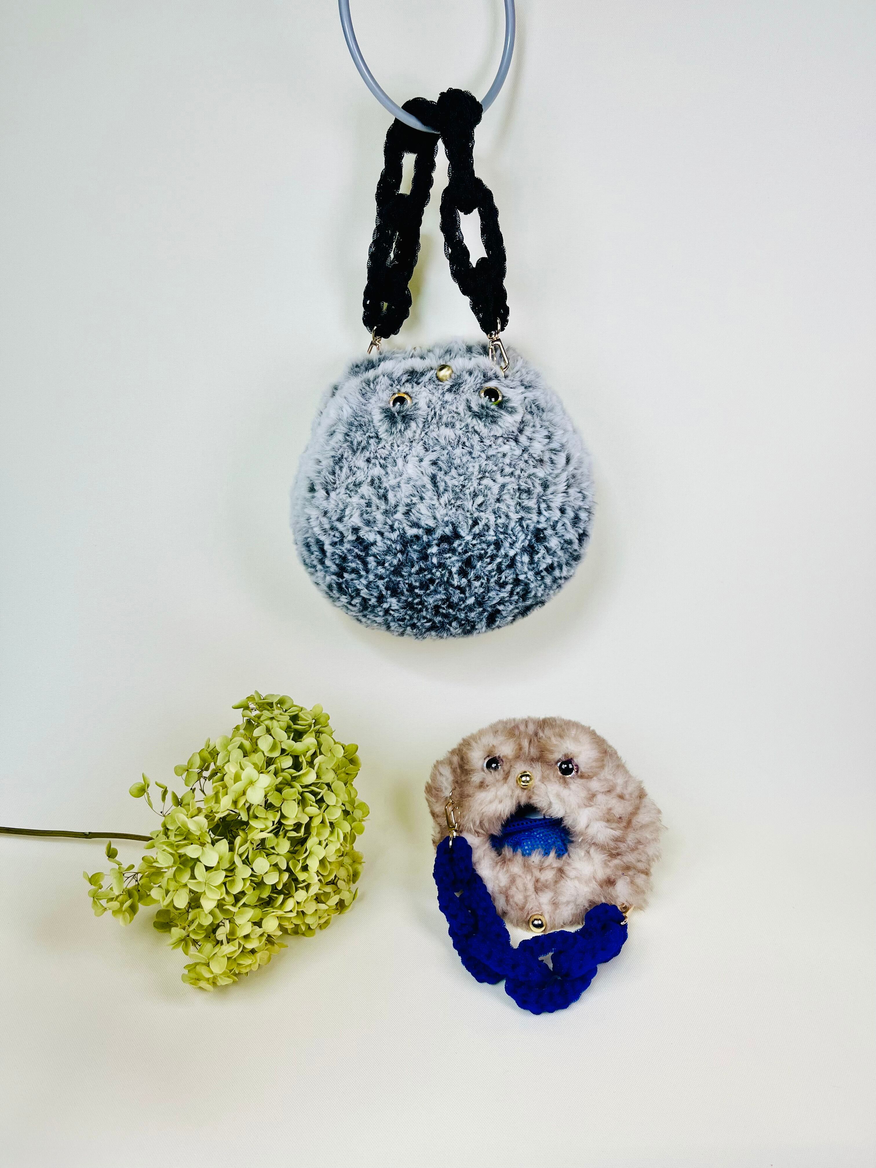 エコファーのがまぐちバッグ。モチーフは猫でも犬でもない想像上の動物です