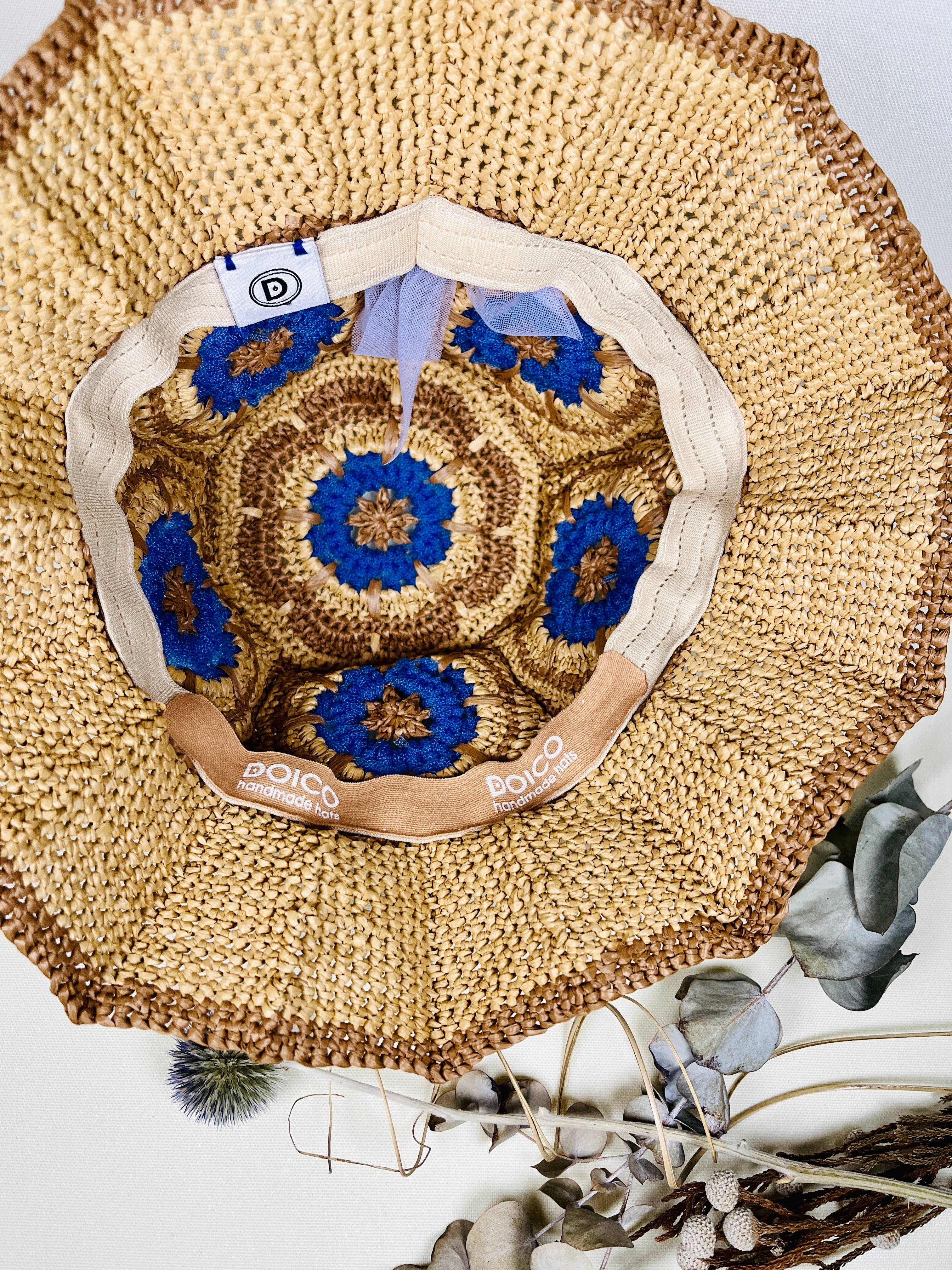 ※ブリム(ツバ)のプリーツは編み構造で形成されてますので無くなりませんが弱くなってきましたら、指の熱と圧力で折り畳んで下さい。角がすぐ復活します。アイロンも可能です。