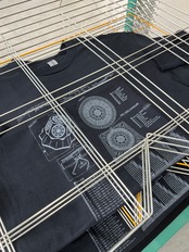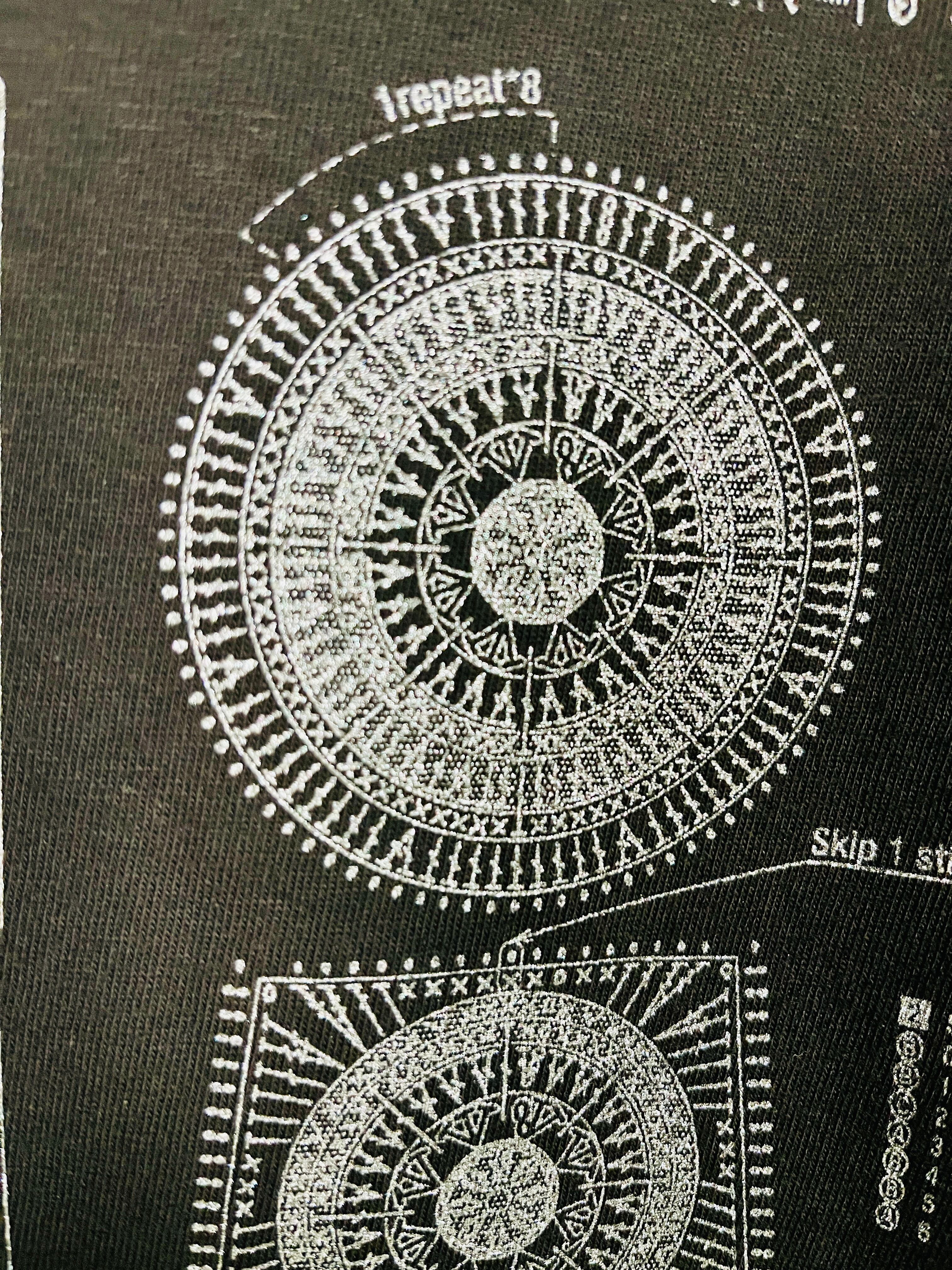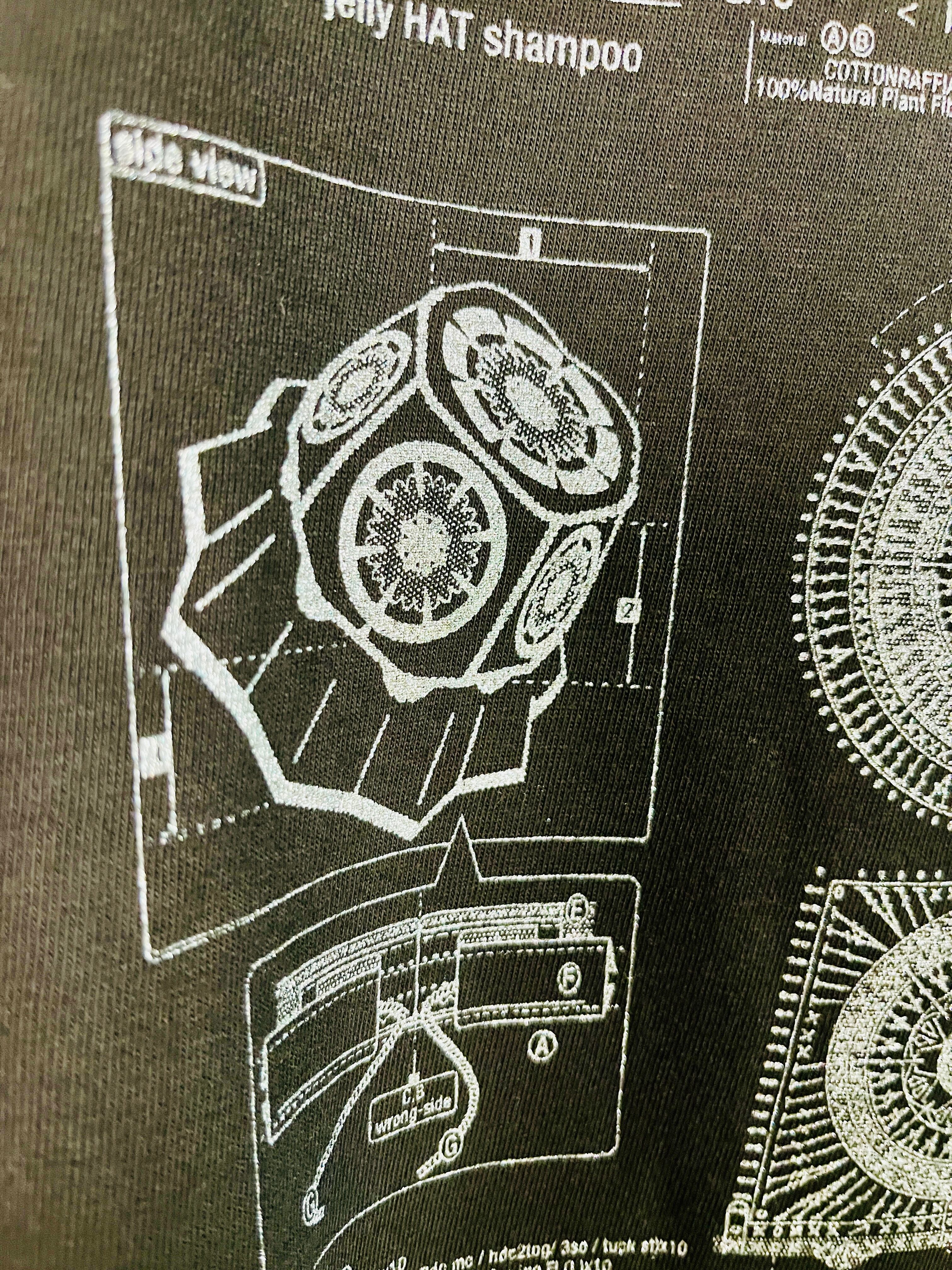 Tシャツのシルクスクリーンプリントをさせていただきました。帽子の設計図です。昔から色々な説明書に載ってる設計図が好きでした。グラフィックとしての美しさがあると思っています。編図がわかる方が見れば製品と同じ物が仕上がるはずです。チャレンジしてみてはいかがでしょうか。Tシャツ素材も程よい厚みで良い肌触りです。
