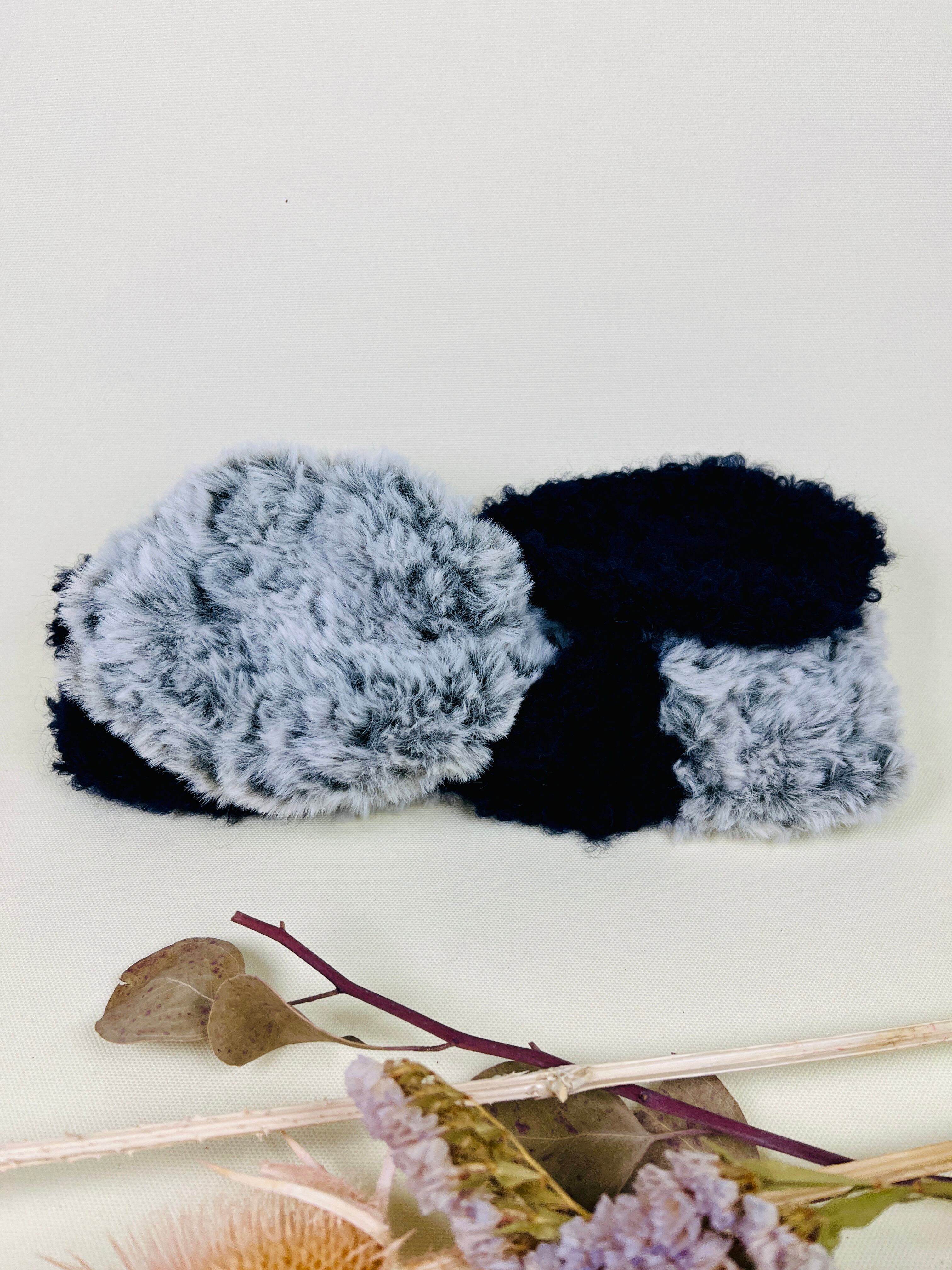ループヤーンはベビーアルパカを混紡したフワフワでクルクルしたエアリーな糸です。たっぷり二本どりでファーに負けない存在感があります。