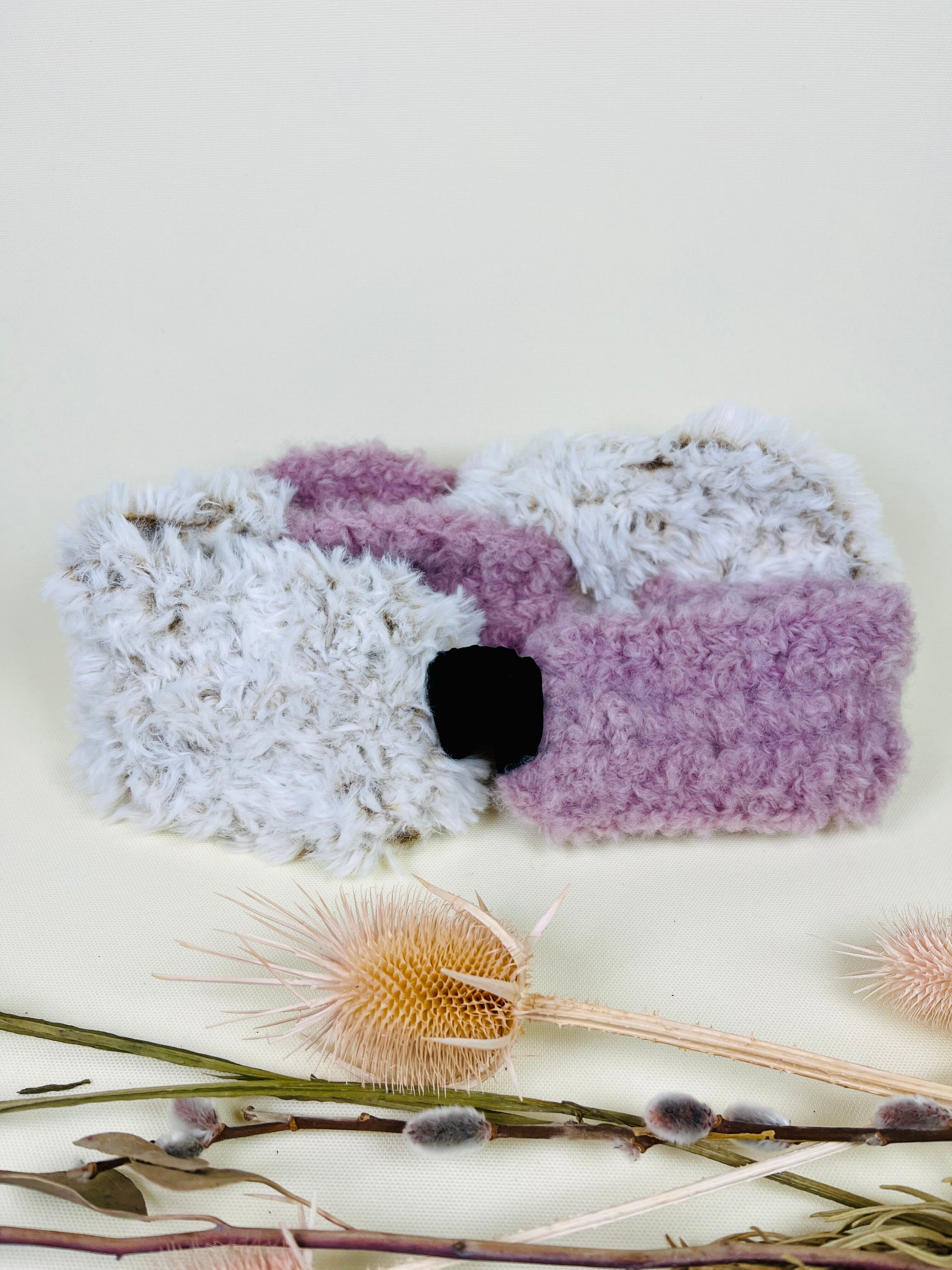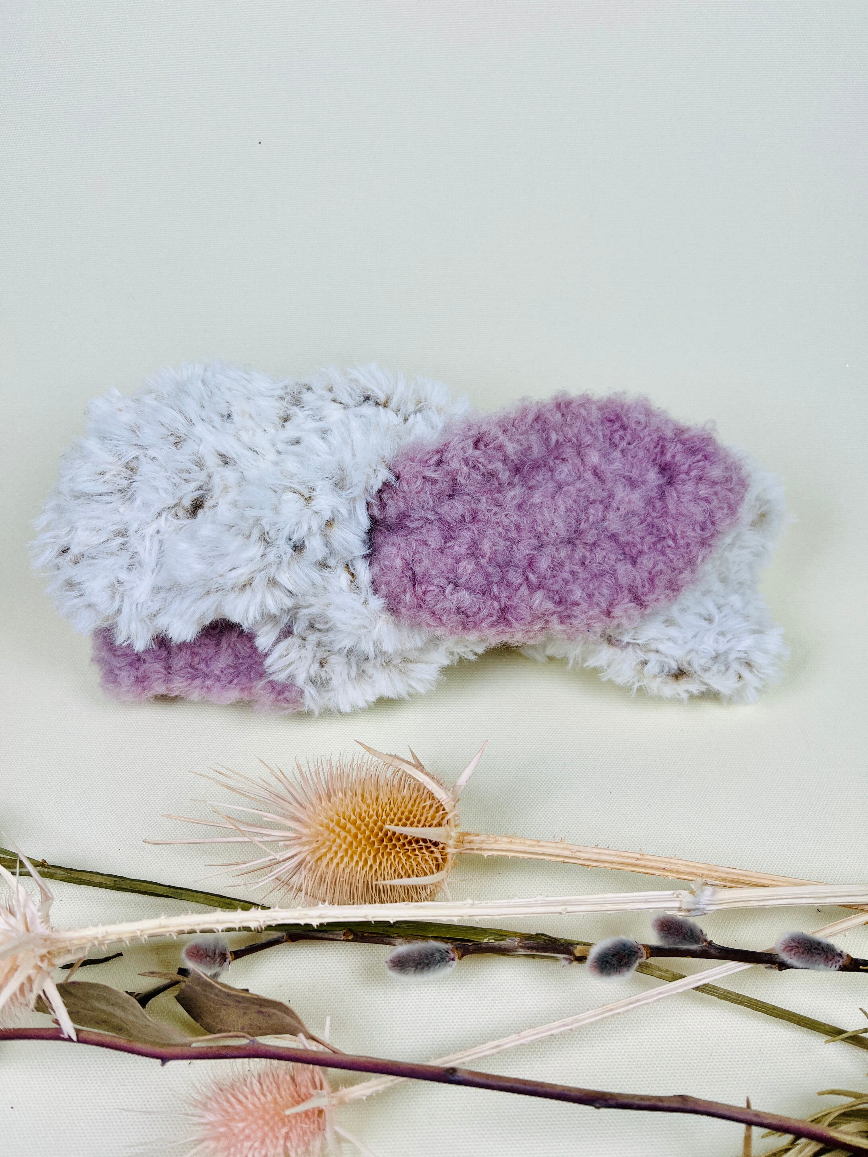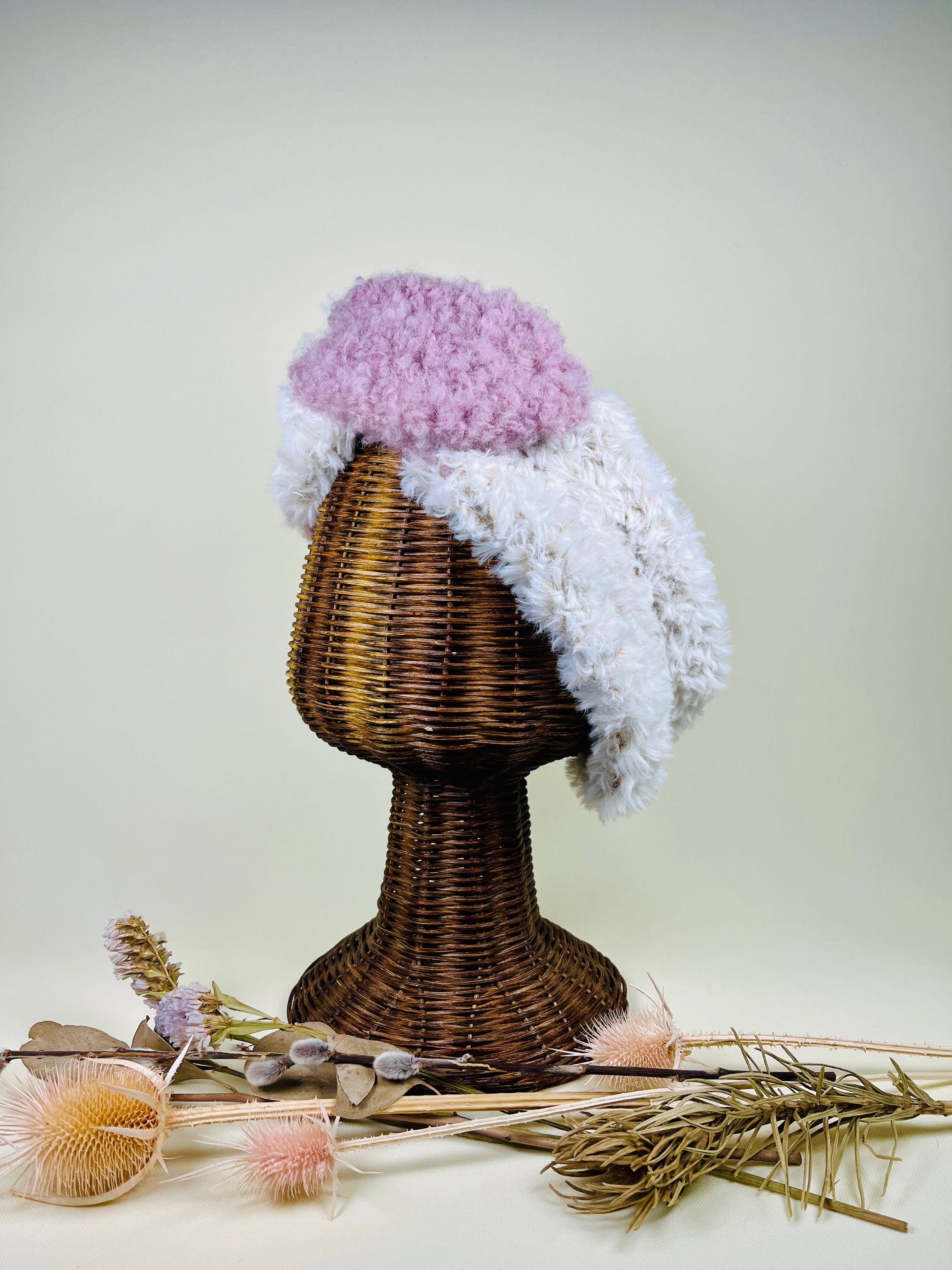 ループヤーンはベビーアルパカを混紡したフワフワでクルクルしたエアリーな糸です。たっぷり二本どりでファーに負けない存在感があります。